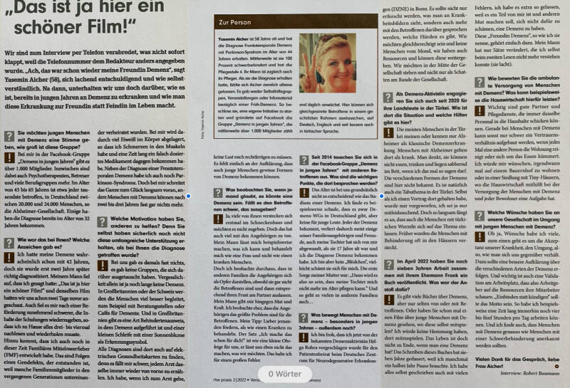 • Gastbeiträge von Yasemin & Frank Aicher in „pflegen: Demenz“, 3. Quartal 2024